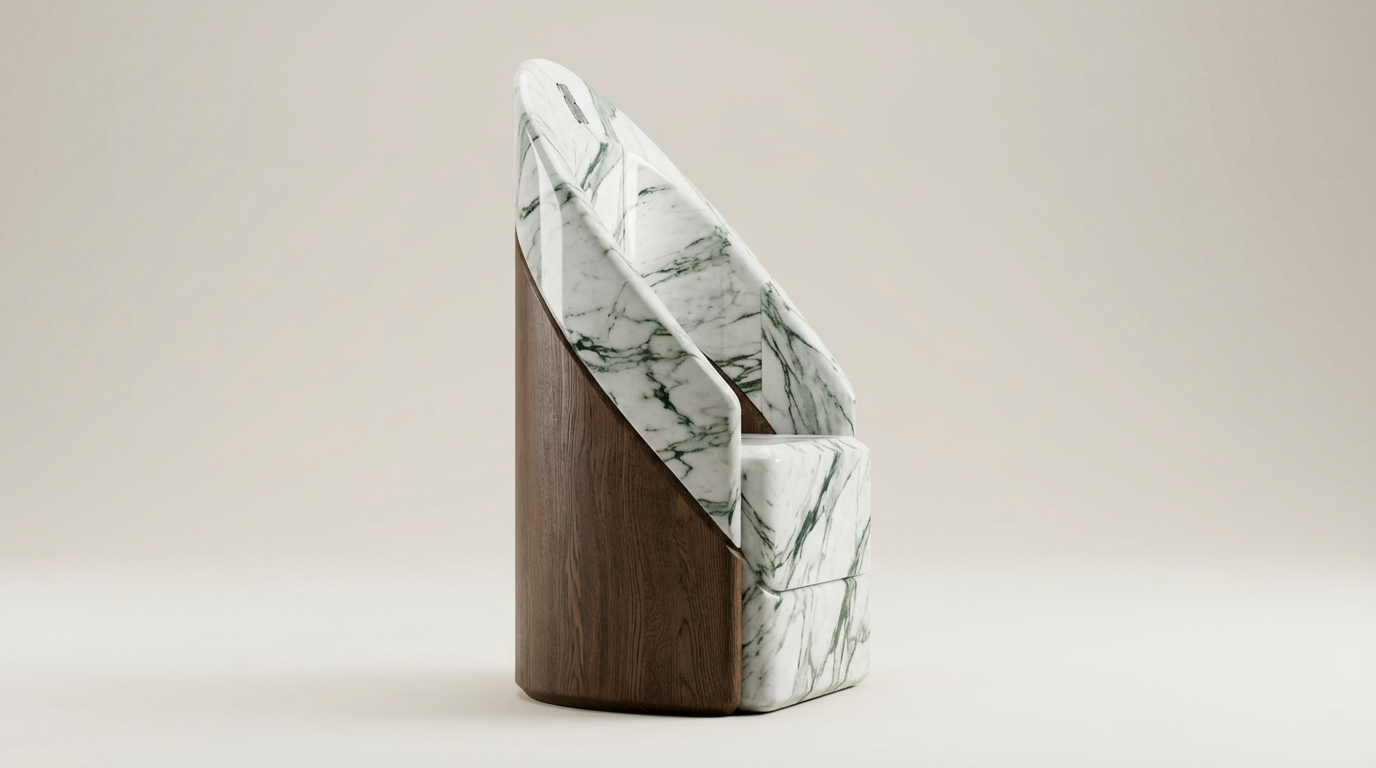 Chiara is a contemporary chair designed through the fusion of wood and marble, creating a strong yet elegant industrial presence. The combination of warm natural wood and solid marble results in a chair that feels both minimal and bold, modern yet timeless.