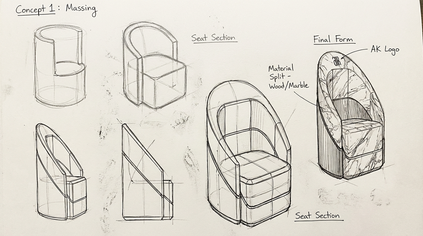 A major focus during the design process was detail , not only in shaping the chair, but also in how those details are presented. From early concept development to final visualization, every curve, material transition, and proportion was carefully refined.
