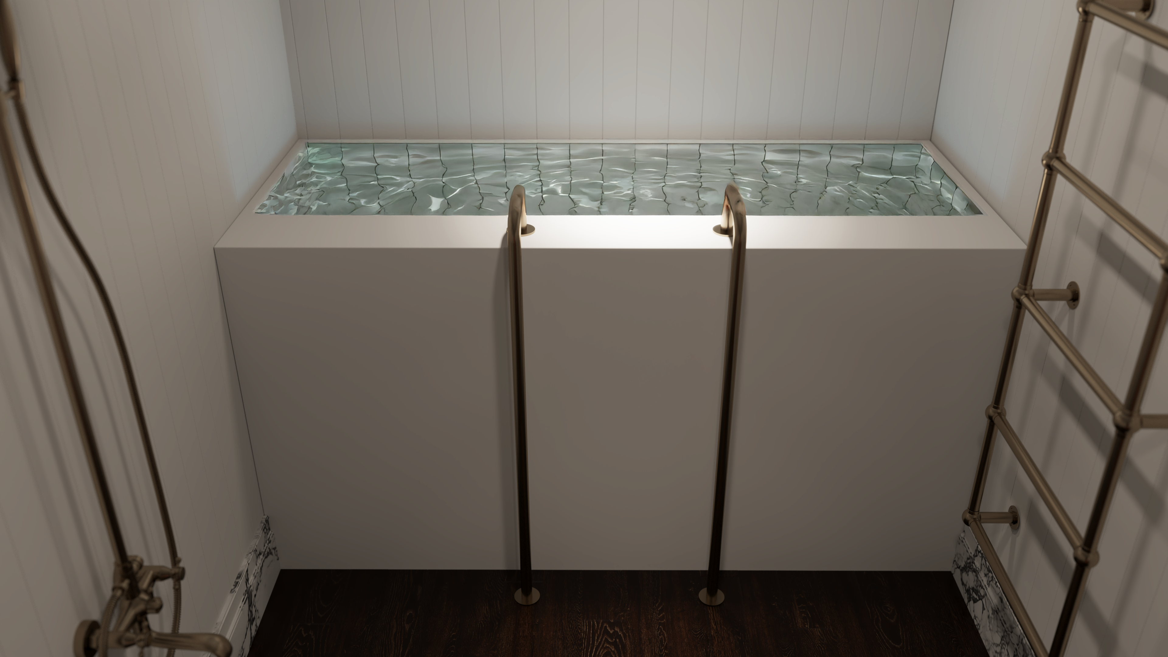 The space is finished with a bespoke Brass Monkey ice bath in microcement, creating a subtle contrast against the timber-tone flooring and tying the modern wellness elements into the wider architectural setting.