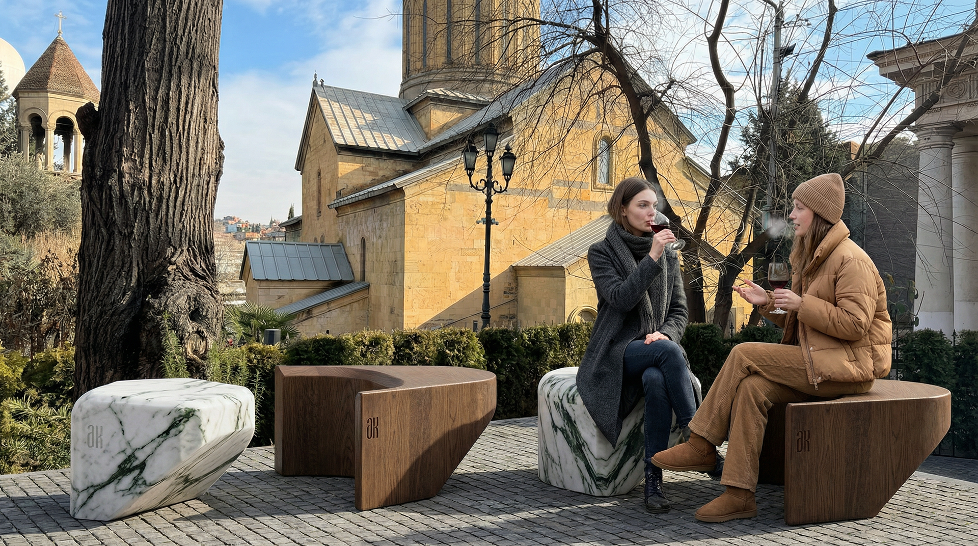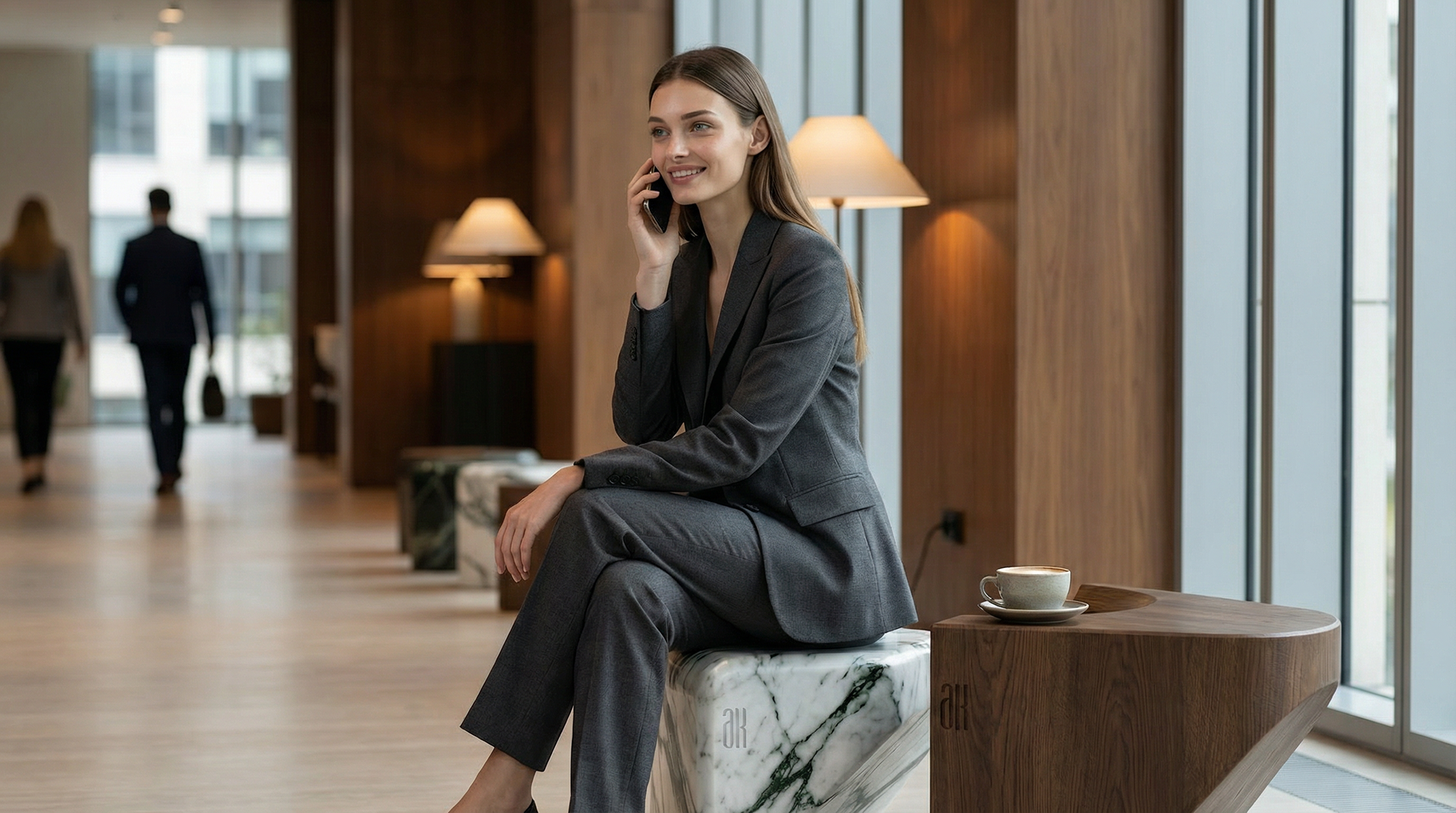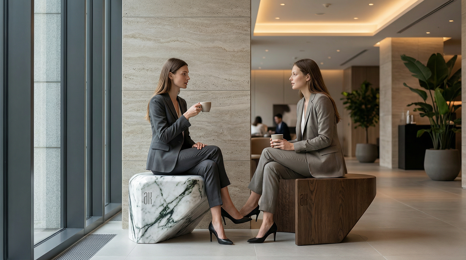 Material selection played a key role in this project. Both marble and wood were chosen for their eco-friendly properties, durability, and ability to perform in interior and exterior conditions. As a result, the design works seamlessly in residential spaces, commercial environments, business centers, lobbies, and outdoor areas always maintaining a luxury, contemporary presence.