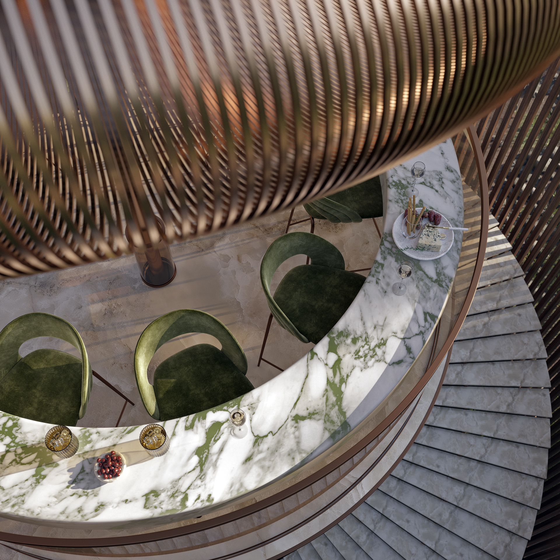 This project explores the harmony between architecture and nature—a luxurious bar concept nestled in the middle of a serene forest.